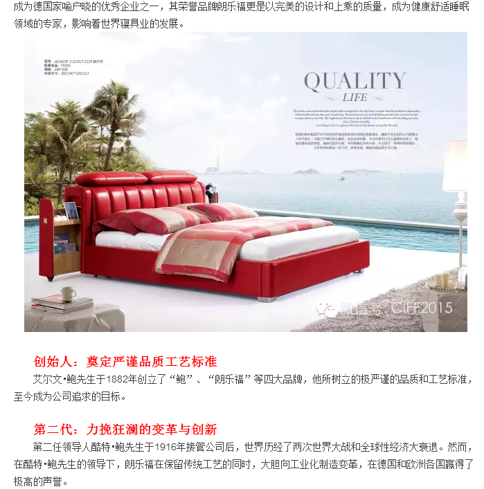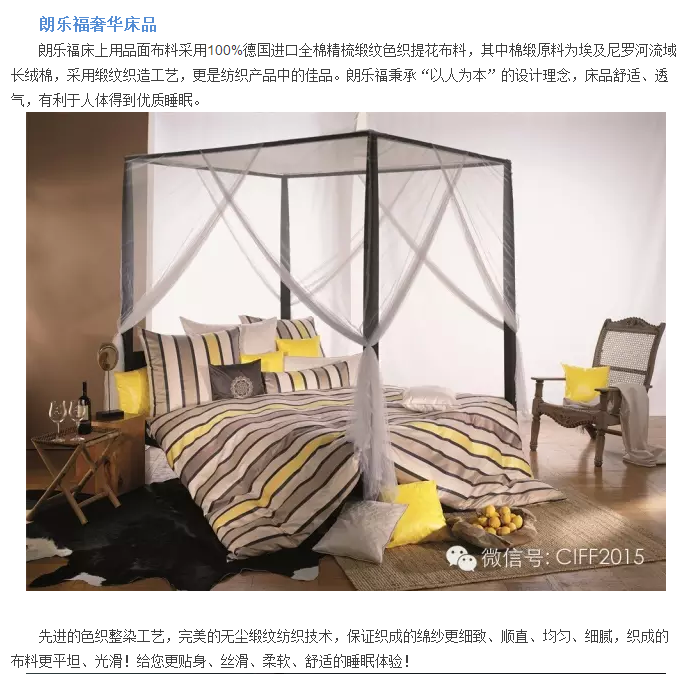 第36屆上海虹橋家具展:Long life basics朗樂福-跨越三個世紀的德國高端寢具奢華品牌