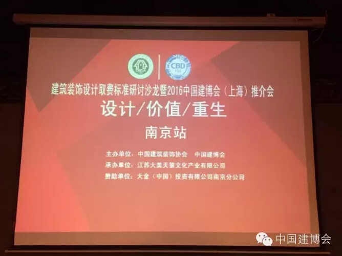 1月8日,由中國建筑裝飾協(xié)會、中國建博會、江蘇省裝飾協(xié)會、南京市裝飾協(xié)會聯(lián)合主辦的“建筑裝飾設計取費標準研討會暨2016中國建博會(上海)推介會”,在古都南京紅樓茶館成功舉辦第三站。眾多建筑裝飾企業(yè)、設計機構、設計師、投資人、行業(yè)協(xié)會領導等眾多嘉賓齊聚現(xiàn)場,共同交流探討中國建筑裝飾行業(yè)的設計價值及理念。