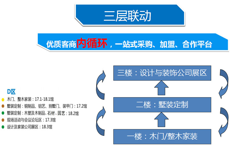 廣交會(huì)展館C區(qū)11個(gè)展館將全面優(yōu)化展區(qū)布局,傾力打造系統(tǒng)門窗?鋁木門窗以及鋁合金門窗兩大類別題材。全新的中國建博會(huì)(廣州)D區(qū)(保利展館)除將把木門/整木家裝題材“整體前移”外,更將整合原相對散放布局的樓梯、銅制品、鋁藝、木塑等高端家裝消費(fèi)產(chǎn)品,升級(jí)打造為木門與墅裝定制題材,6萬多平方米的展館分設(shè)三大展區(qū):木門/整木家裝展區(qū)、墅裝定制展區(qū)、設(shè)計(jì)及家裝公司展區(qū)(詳細(xì)介紹閱附件),為高端家裝提供一站式解決方案。