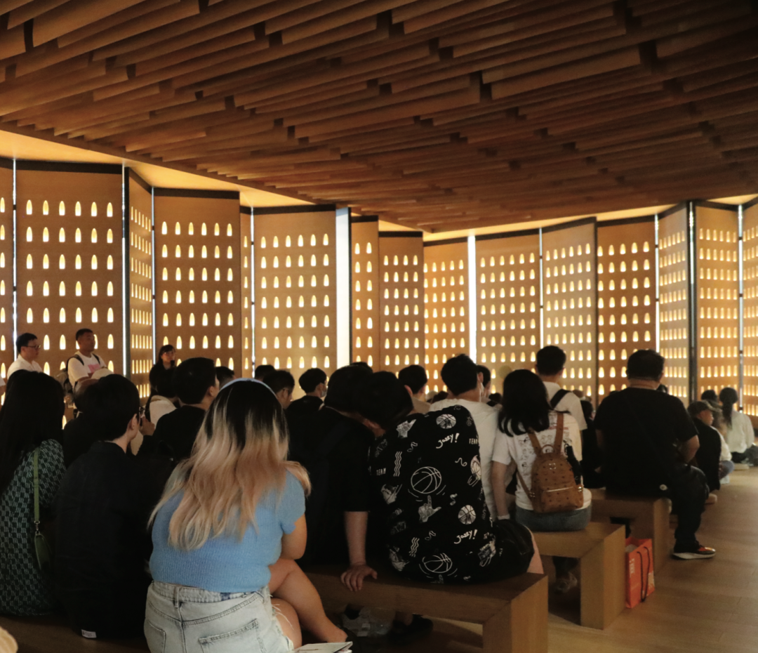 通過多扇屏風相連,蜿蜒曲折地圍出一片寂靜的空間,引領觀者逃離繁雜塵世,發(fā)現(xiàn)屬于自己的生活節(jié)奏,并避免被淹沒在時間洪流的困境中。