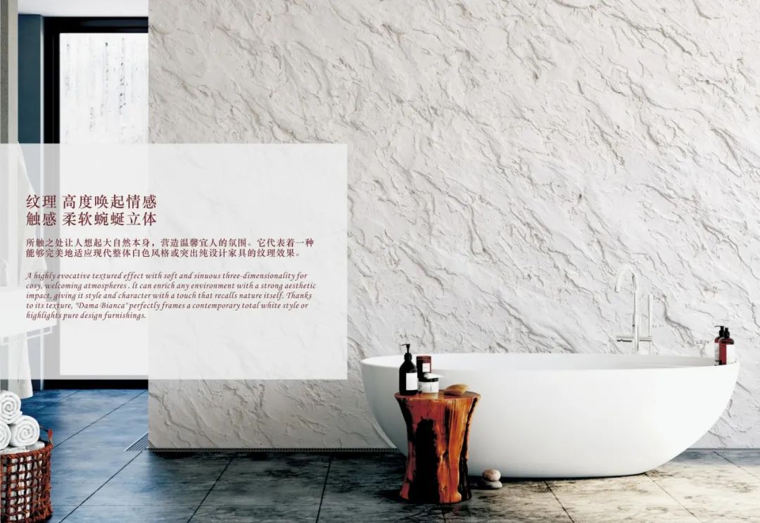 TEXTURED 特斯圖系列產(chǎn)品主打呈現(xiàn)天然無機(jī)礦物的厚重質(zhì)感,以及墻地一體的自然舒適,既能打造粗獷紋理,又能呈現(xiàn)細(xì)膩通透,精選獨(dú)特材質(zhì),立體飽滿,讓空間充滿層次與高級。